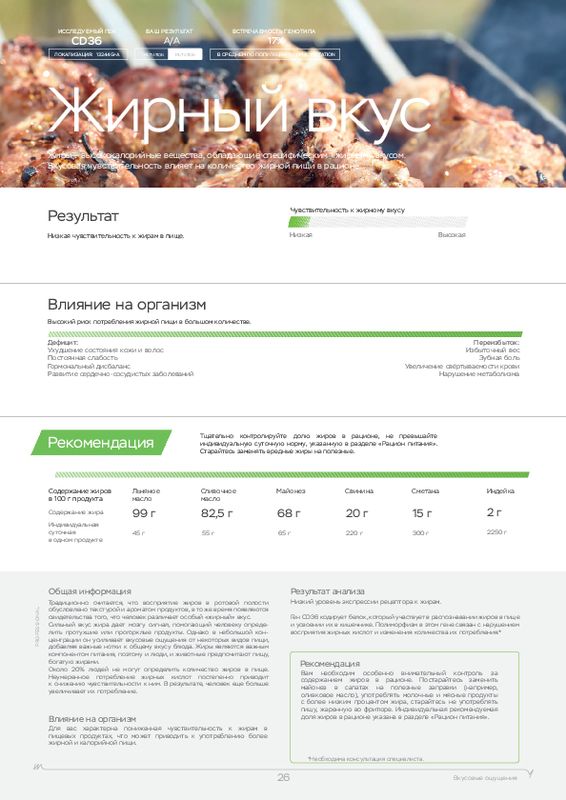 | Рацион питания Метаболизм алкоголя Метаболизм кофеина Физическая нагрузка Непереносимости Вкусовые ощущения Никотин Психологические зависимости Пищевое поведение Потребность в витаминах Уровень холестерина Спортивный потенциал | Рацион питания Метаболизм алкоголя Метаболизм кофеина Физическая нагрузка Непереносимости Вкусовые ощущения Никотин Психологические зависимости Пищевое поведение Потребность в витаминах Уровень холестерина Спортивный потенциал | Рацион питания Метаболизм алкоголя Метаболизм кофеина Физическая нагрузка Непереносимости Вкусовые ощущения Никотин Психологические зависимости Пищевое поведение Потребность в витаминах Уровень холестерина Спортивный потенциал |